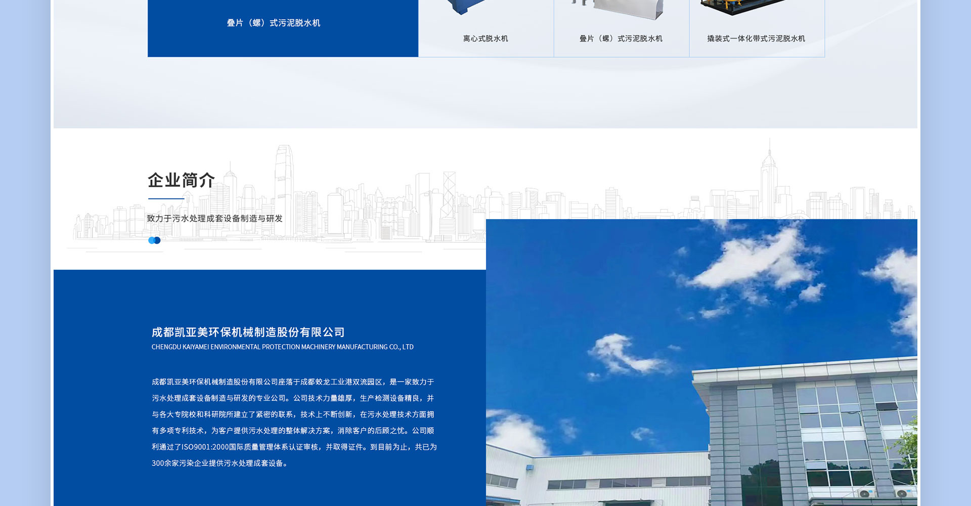 公司自成立以来秉承“靠质量生存,靠创新发展,以客户为中心”的经营理念,不断前行,并与多所大专院校和科研机构紧密合作,为用户提供污水处理和污泥处置的整体解决方案,为节能环保、绿水青山不断贡献力量。