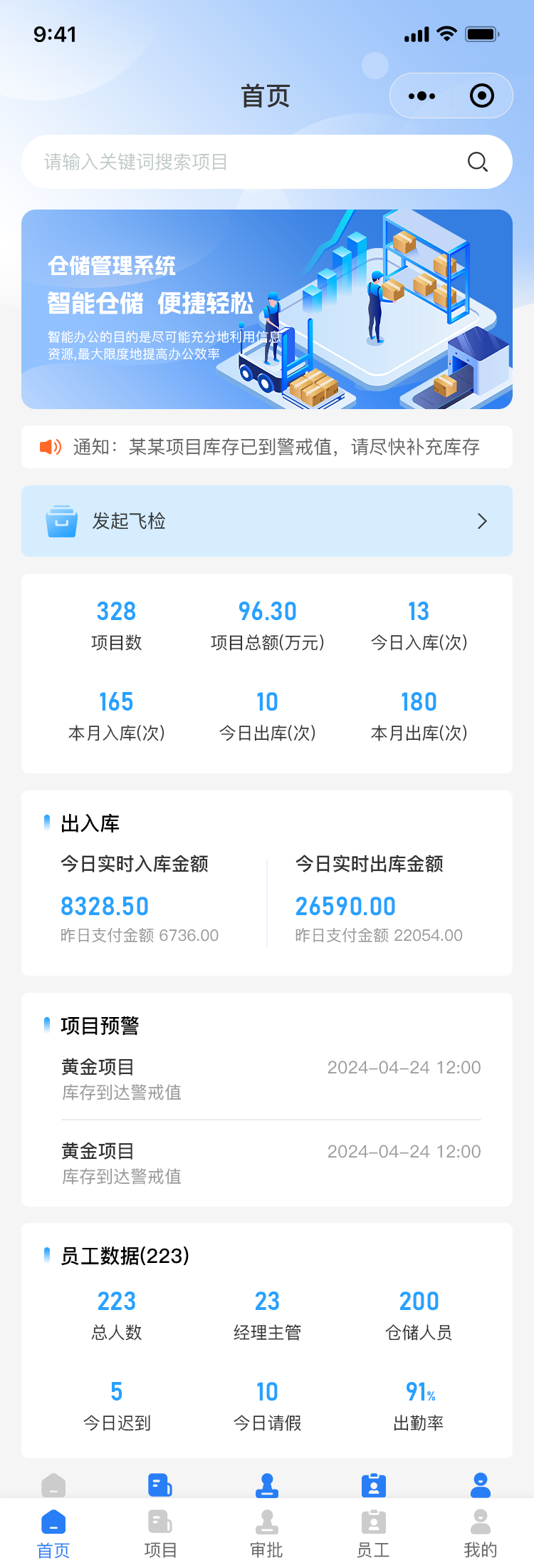 当项目出现报警,项目提交审批提交至项目主管进行审批
