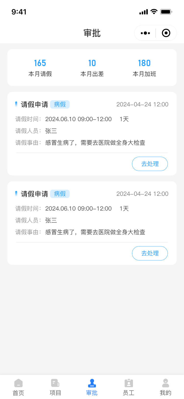 审批流程板块:请假申请、外出申请、财务板块申请