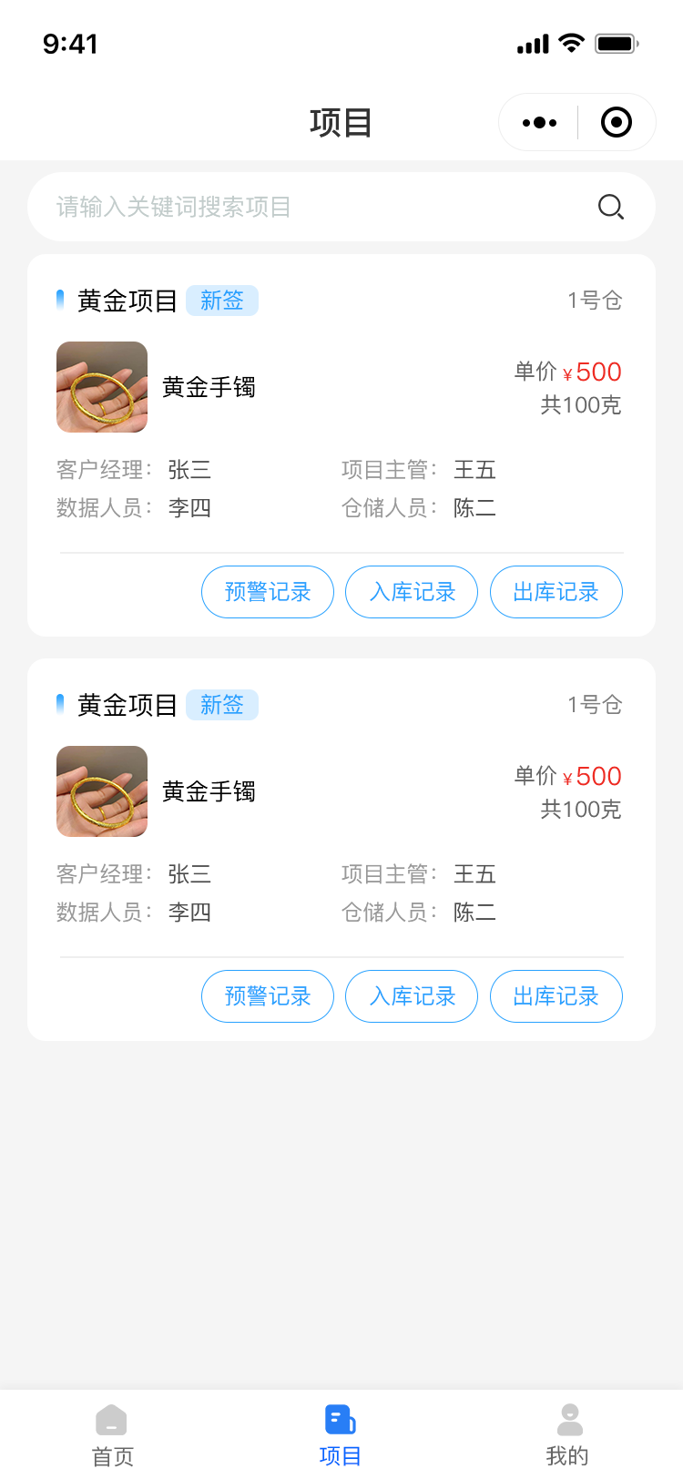 项目名称\仓库位置\定位\货物选择\单价展示\跟随货物获取单价值\单位选择例如:个、张、克、干克等\重量输入\仓储人员展示\总价值展示跟随重量计算单价获得\照片pc支持打包上传