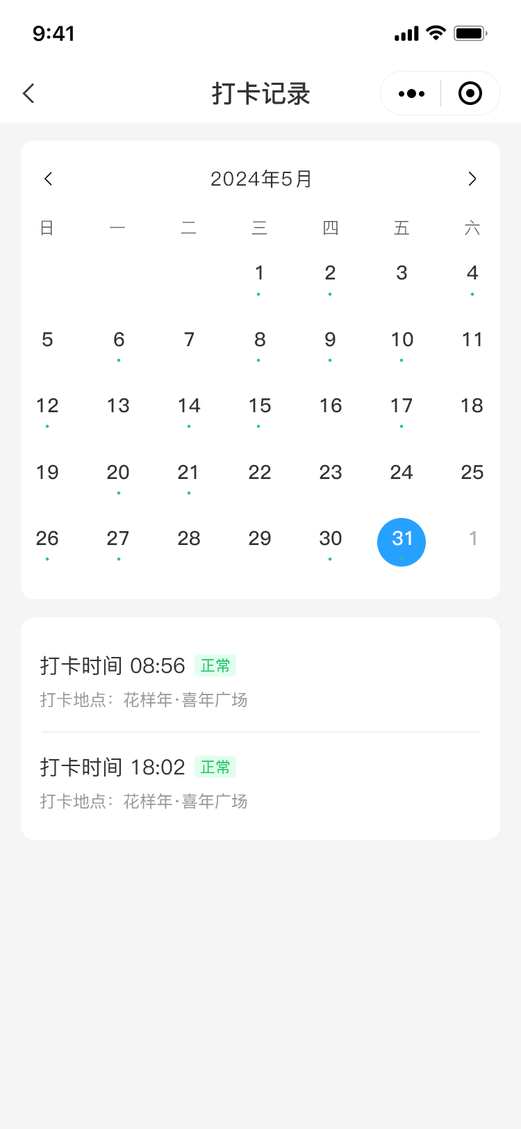4定位打卡:需要在设置的范围内进行打卡,若不在范围内无法操作。