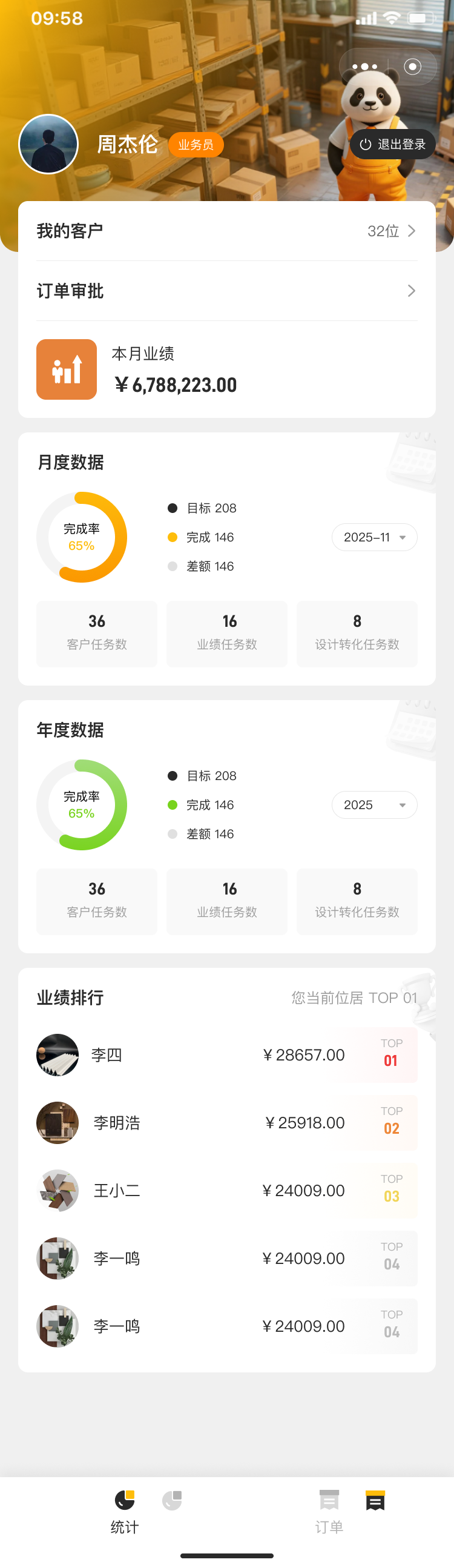 2.业务员分为业务经理和普通业务员,使用分享二维码进行客户的发展,可帮客户创建草稿单客户可进行查看以及确认,可帮助客户进行下单和改价选择加购商品以及修改商品楼层设置账期并发起上一级的订单审核流程,订单审核通过后进行司机端分配订单。
