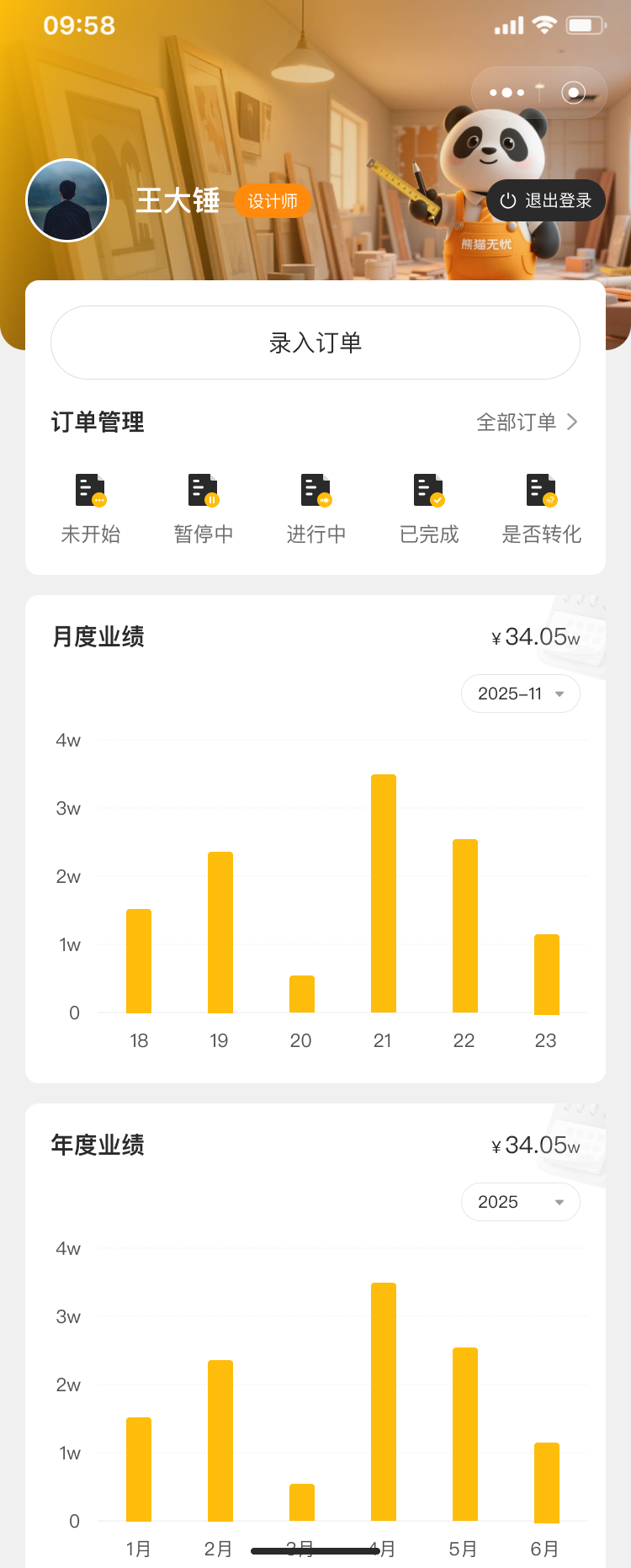 4.设计师端进行订单录入现在服务类型,输入客户信息,上传服务示例图,选择业务员,进行订单转化,修改订单,完成订单等。