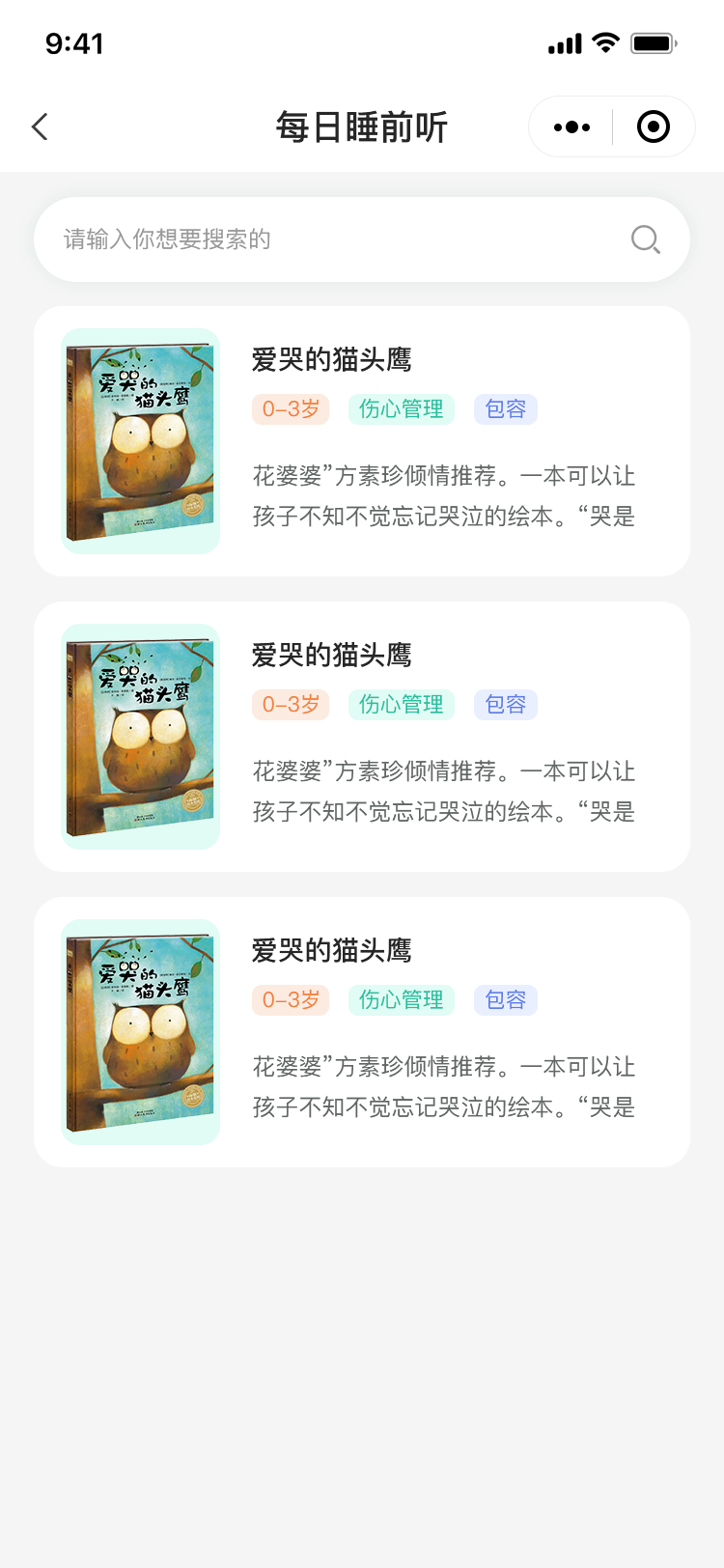 每日睡前听:帮娃选绘本板块的书籍,可以直接点击加入每日睡前听、删除可多选和单选删除书籍、听书点击可播放音频--实现熄屏听的功能-