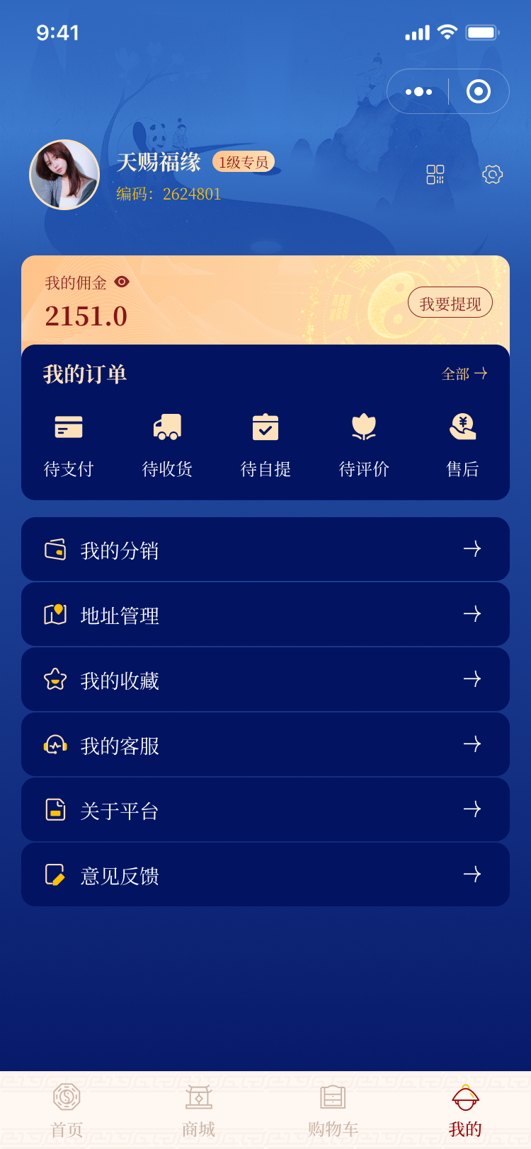普通商城二级分销,身份分为专员,经理,总监达到一定级别获得对应的总业绩提成且不同身份小程序会员颜色不一样突显高级感。对接快递100,售后退款