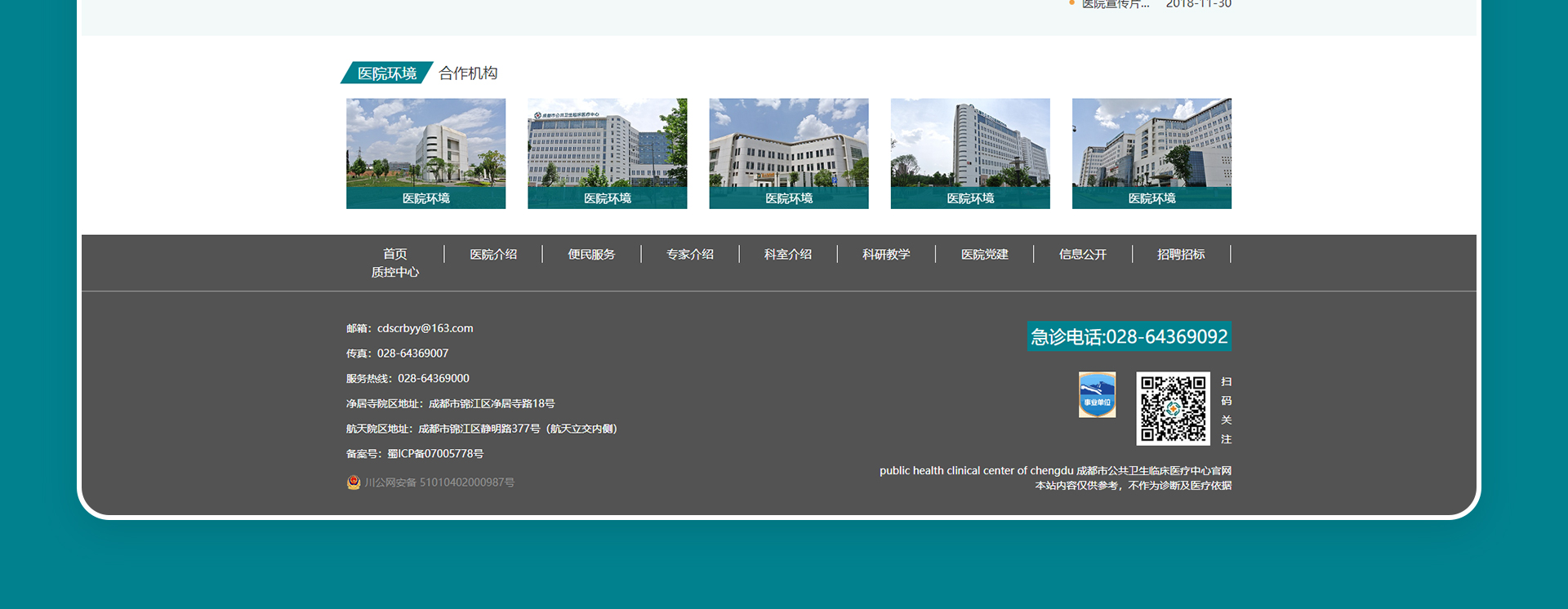成都市公共卫生临床医疗中心是成都中医药大学非直属附属医院及教学基地,是成都中医药大学、成都大学、成都医学院、川北医学院等院校的硕士研究生联合培养单位,也是国家西南地区耐多药结核病、“协和”结核病金牌培训基地,四川省艾滋病专科护士培训基地以及成都市结核病预防与控制中心、疾控人员临床素养培训基地。