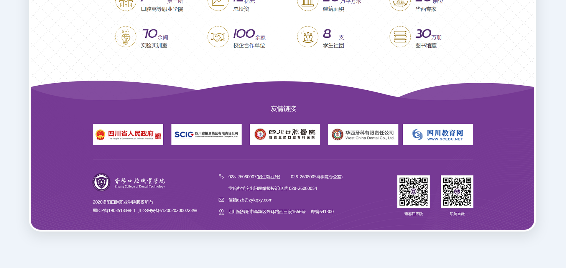 学院地处资阳市“中国牙谷”,是全国第一所以口腔为特色,服务口腔全产业链和大健康产业的高等职业学院;是四川省产业转型发展重点项目——“中国牙谷”“产、学、研、医、养、销”人才培养基地;是川投集团打造成青、乐雅、攀西800公里黄金海拔集中区——“中国健康谷”人才培养基地。