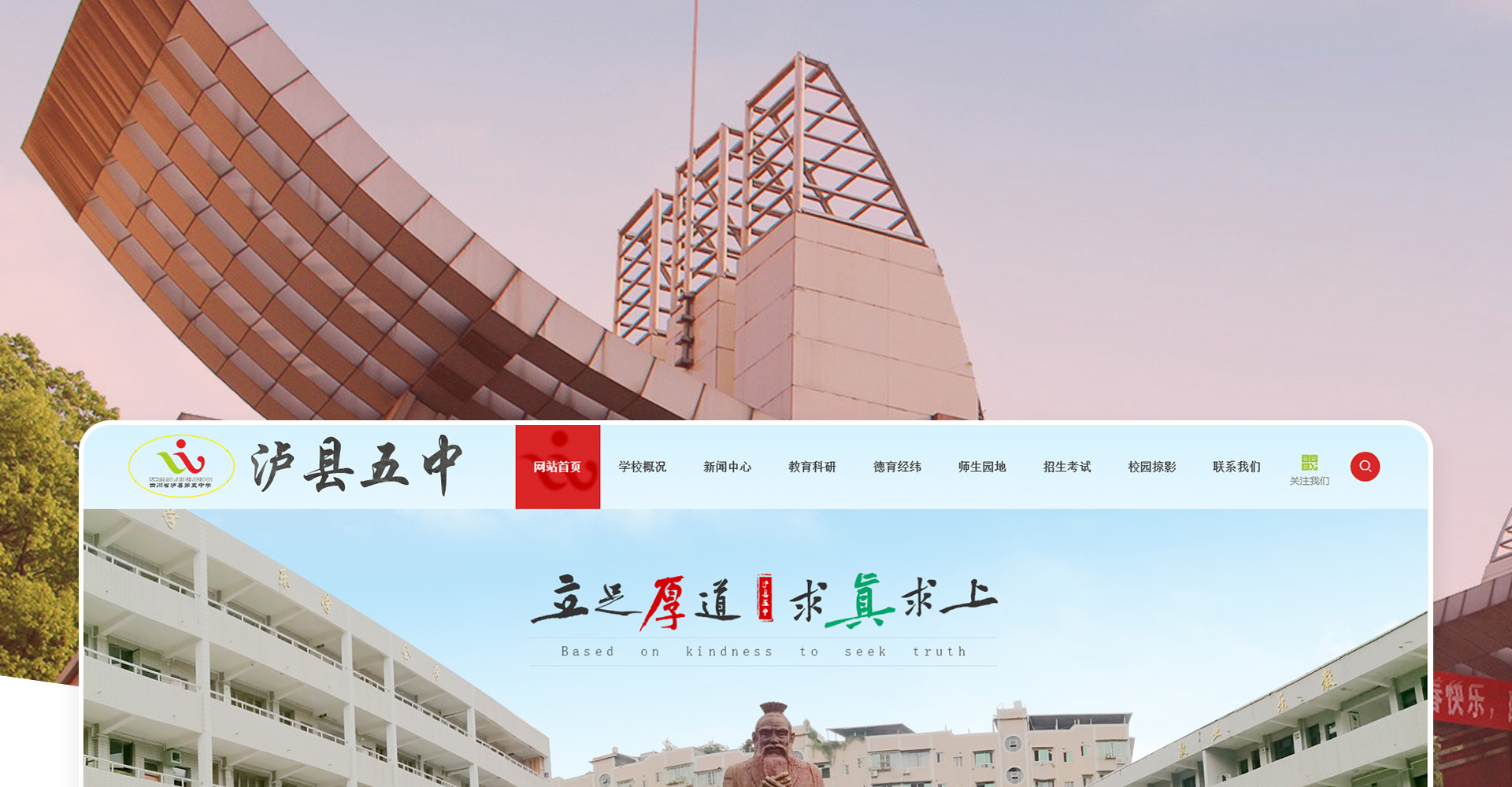 泸县五中博观约取、厚积薄发。学校秉“立足厚道,求真求上”办学理念,始终瞄准教育综合改革实践最前沿,从“导学案•生本课堂”构建到“两自主”改革探索,用自主管理点燃生命活力,用自主学习激发生命潜能。