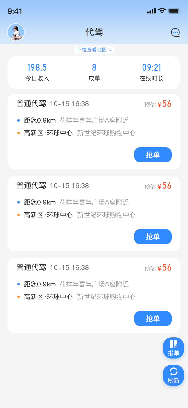 2. 自动接单:根据服务评分及距离远近,自动匹配,自动接单,可手动取消。
