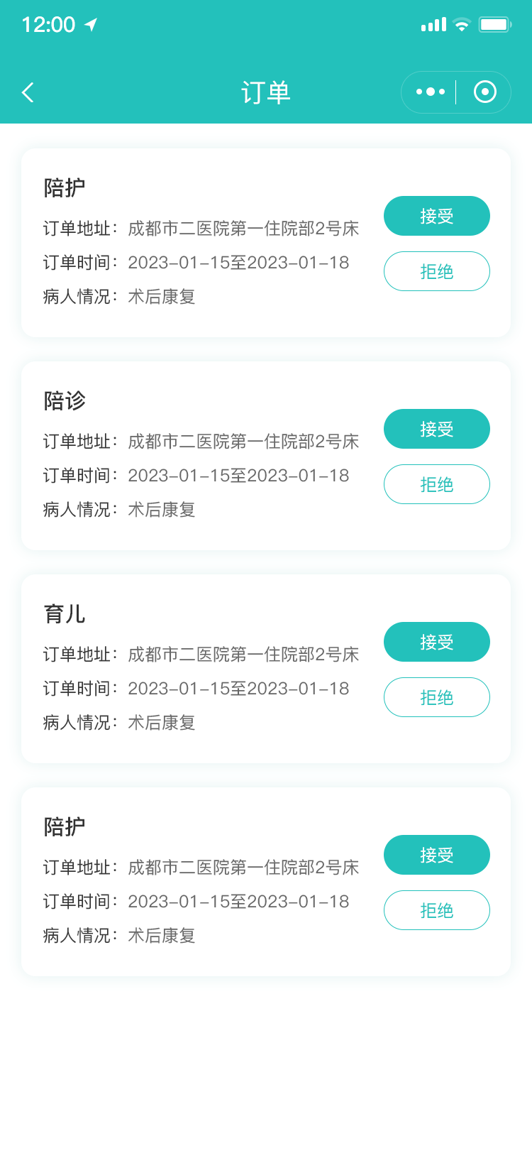 陪诊师可以在接单大厅查看并接受患者的陪诊订单,根据自己所陪诊的区域和专长进行接单。
