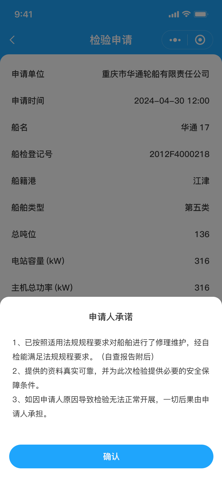 4、现场检验一键预约:受理申请船舶,船东通过微信小程序端或PC端一键预约现场检验时间。